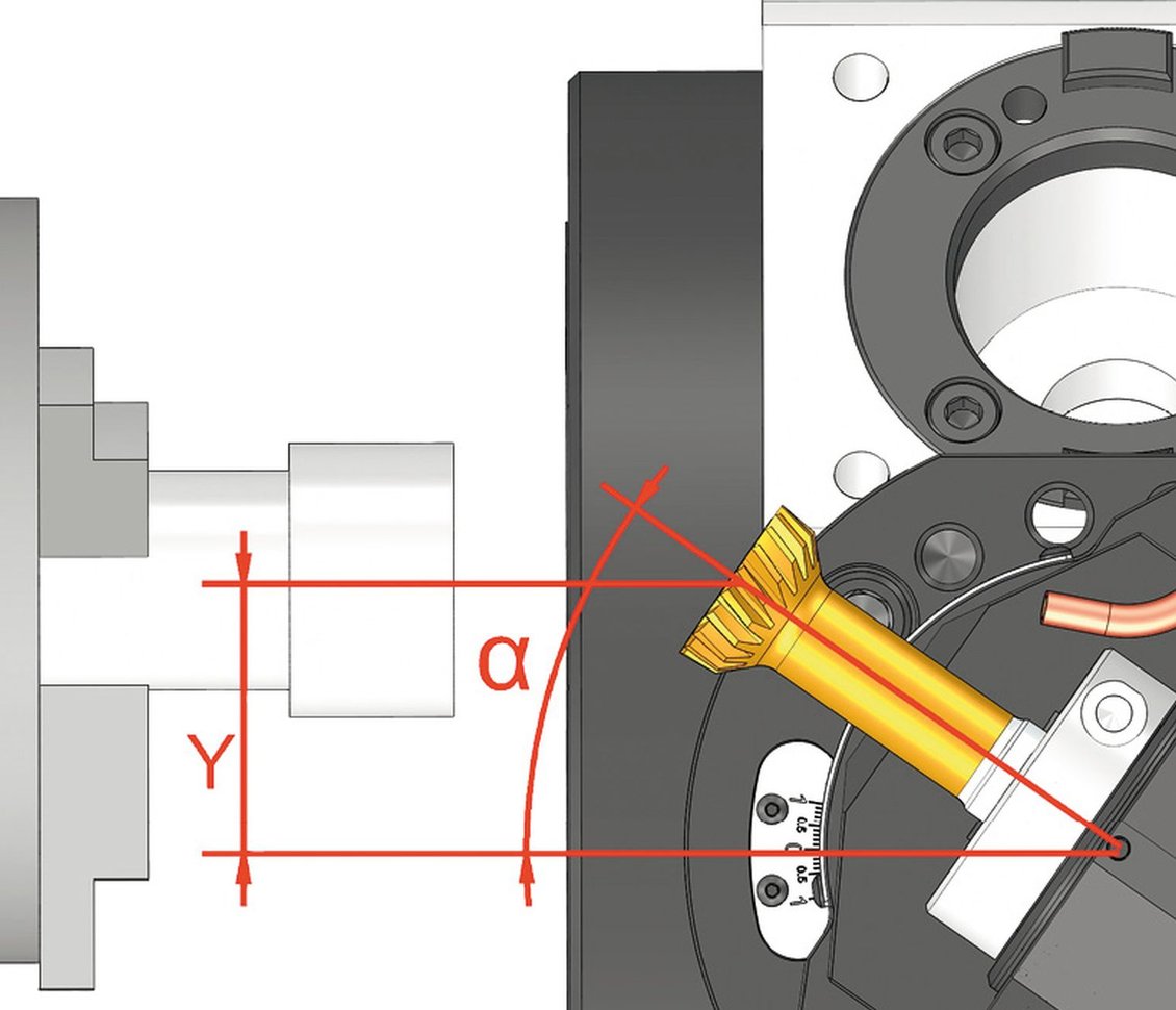 调整角度(α)时引起的刀具在Y轴方向的偏移量必须通过机床Y轴补偿.