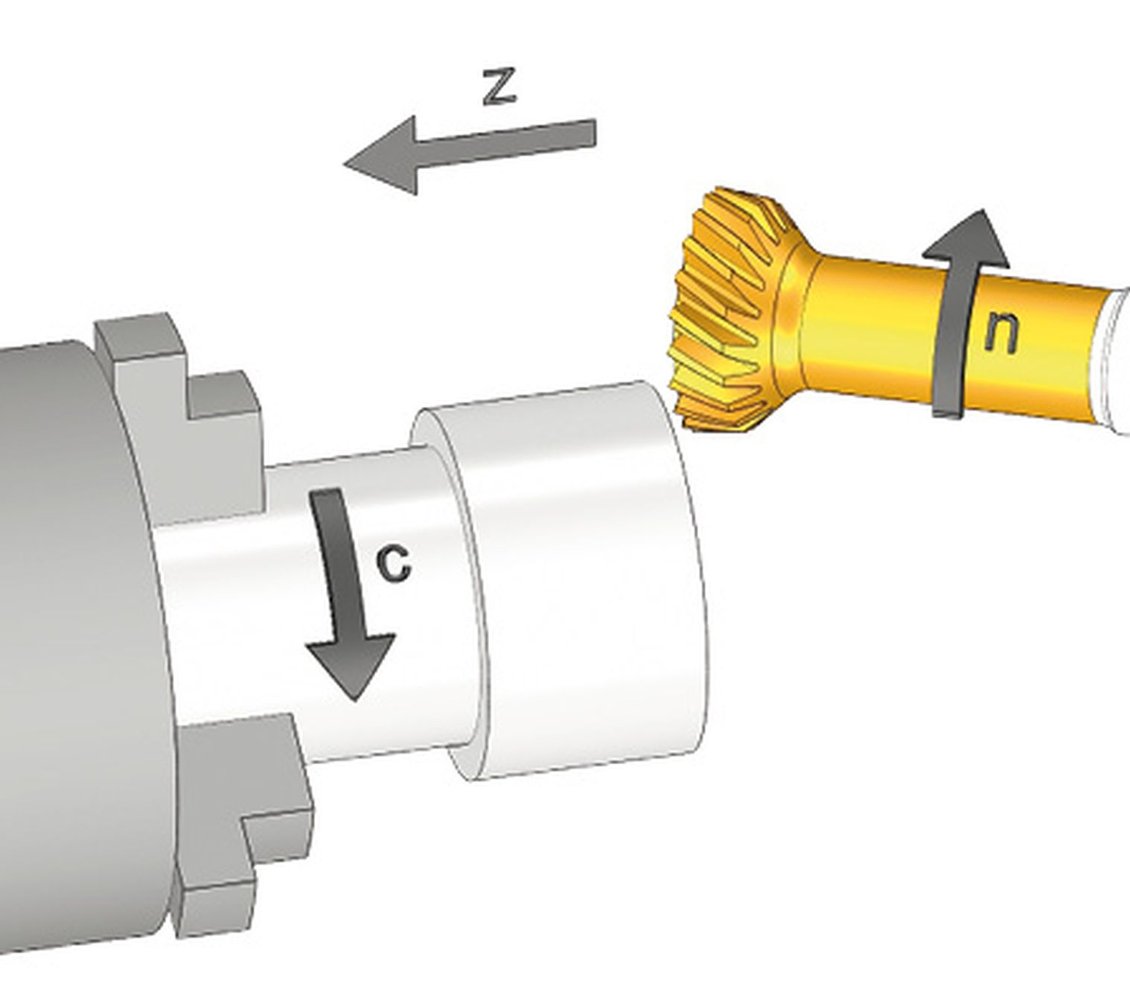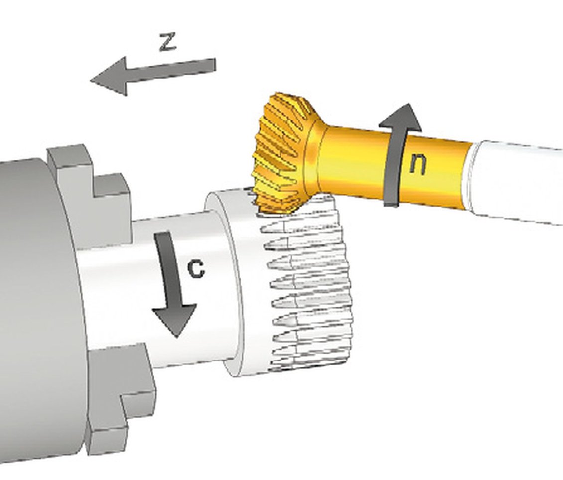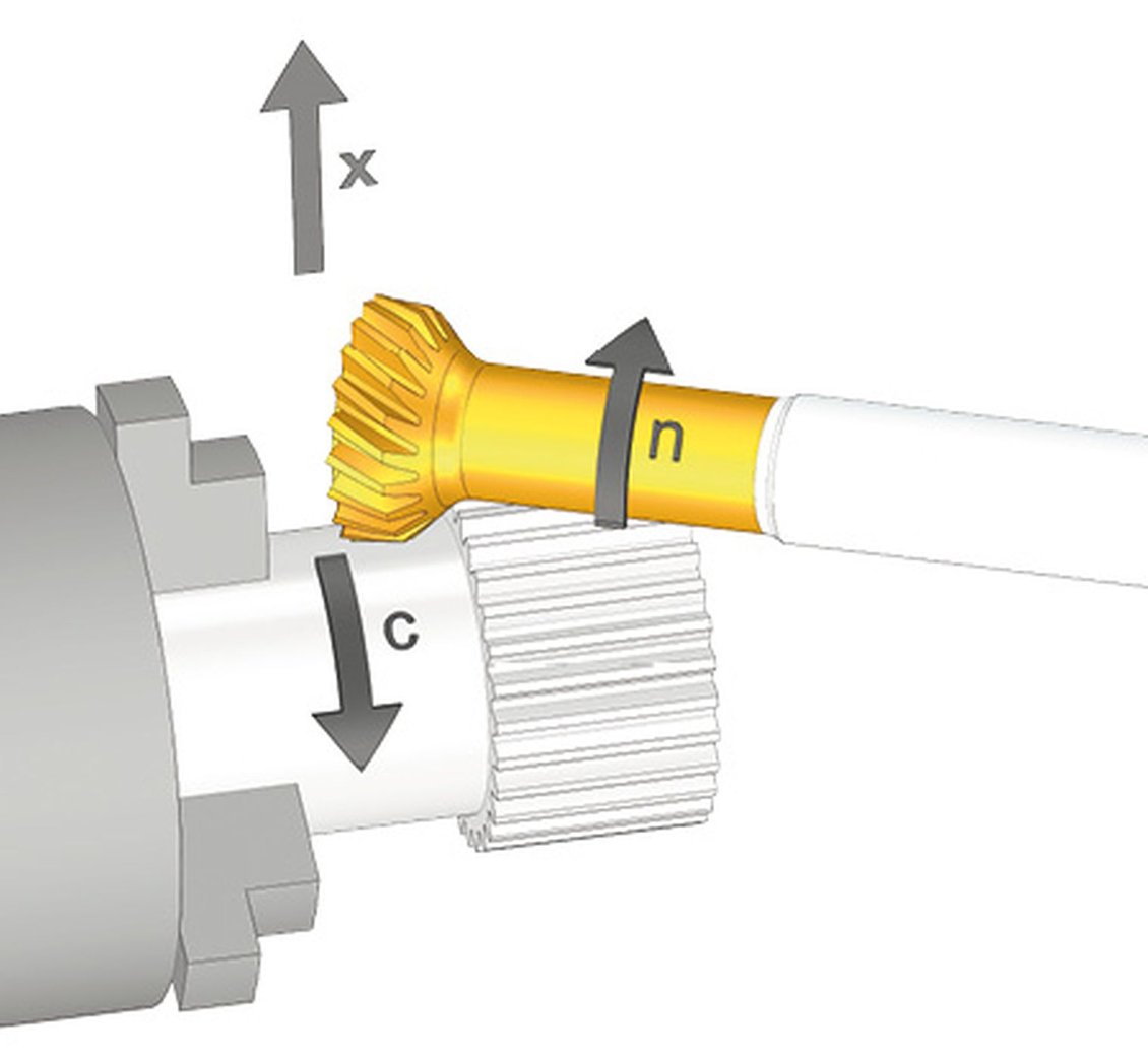 刮齿结束后, 刀具必须朝X轴方向退刀.