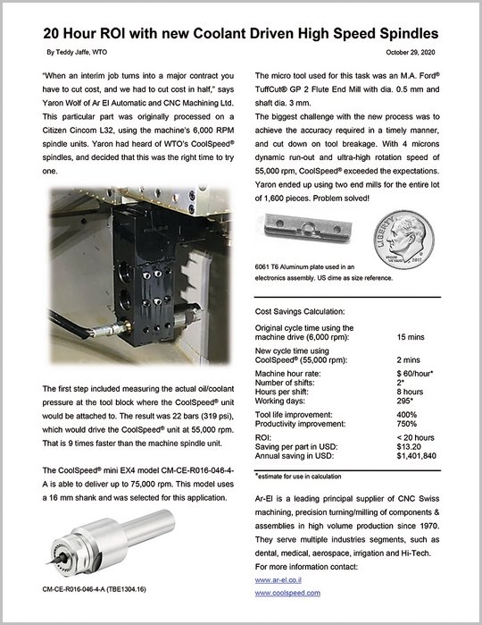 Milling 86% faster with CoolSpeed® than with standard Driven Tool Holders Application: Part for electronics assembly